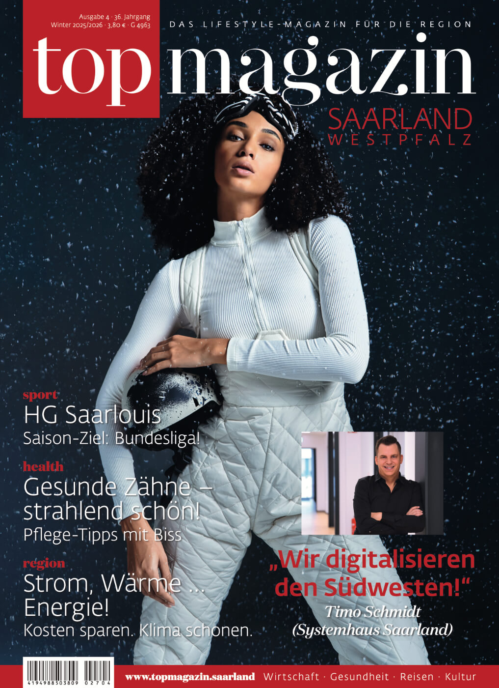 Sie sind neugierig auf die aktuellsten Trends und Themen? Ein kleiner Appetithappen erwartet Sie nur einen Klick entfernt. Das gedruckte Magazin ist exklusiv an ausgewählten Standorten im Saarland erhältlich. Darüber hinaus finden Sie TOP MAGAZIN SAARLAND im gut sortierten Zeitschriftenhandel, einschließlich der Buchhandlungen am Saarbrücker Hauptbahnhof und am Flughafen. Natürlich bieten wir auch Jahresabonnements an.